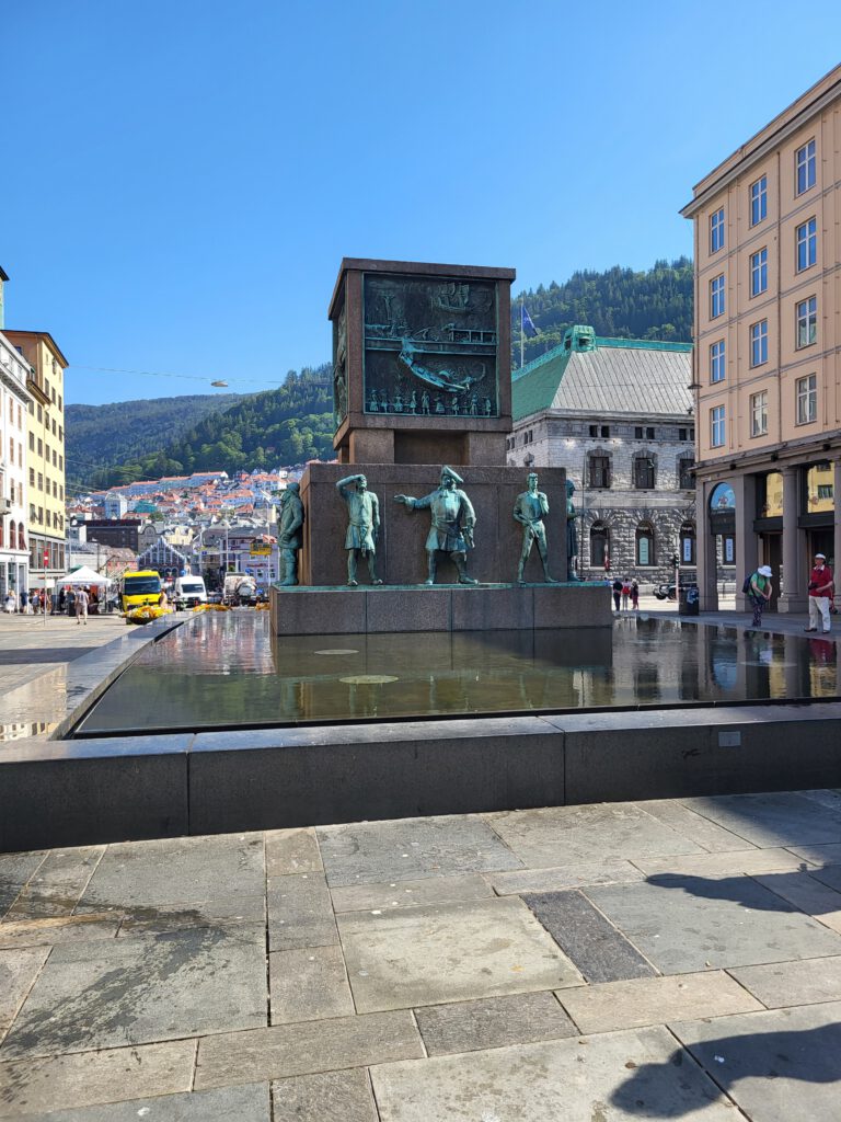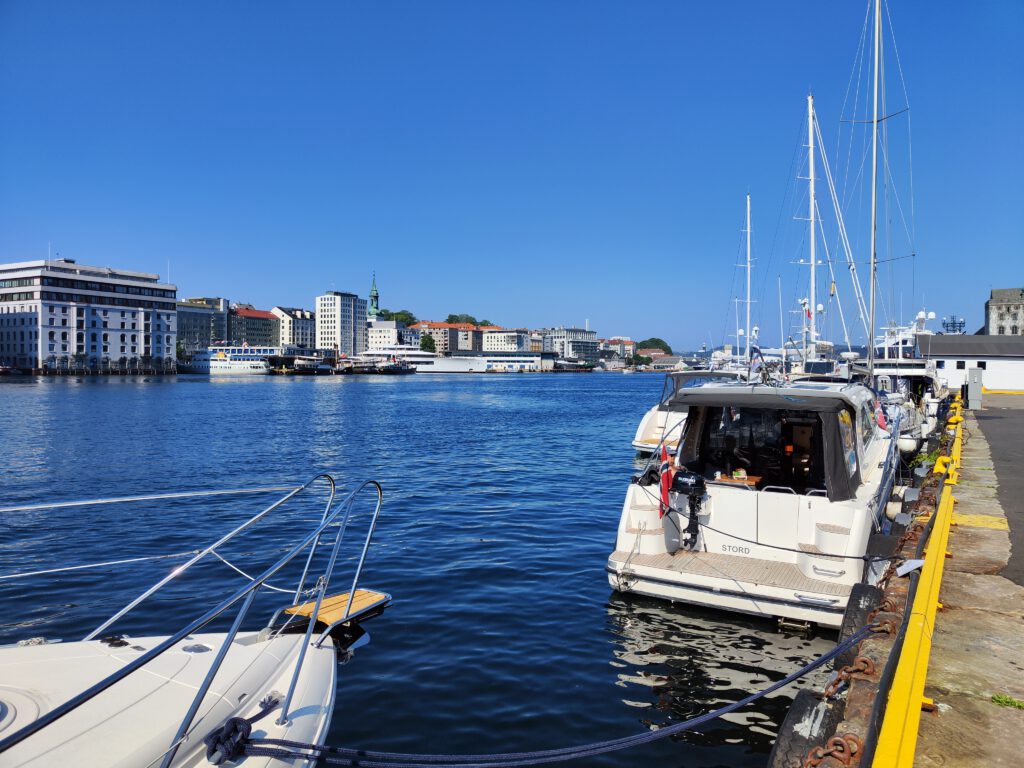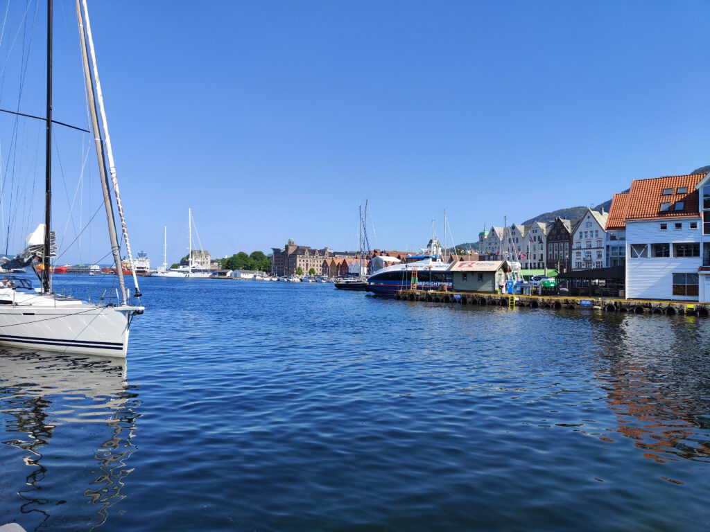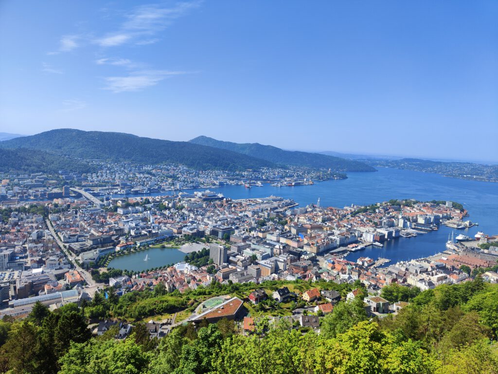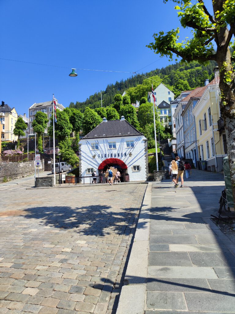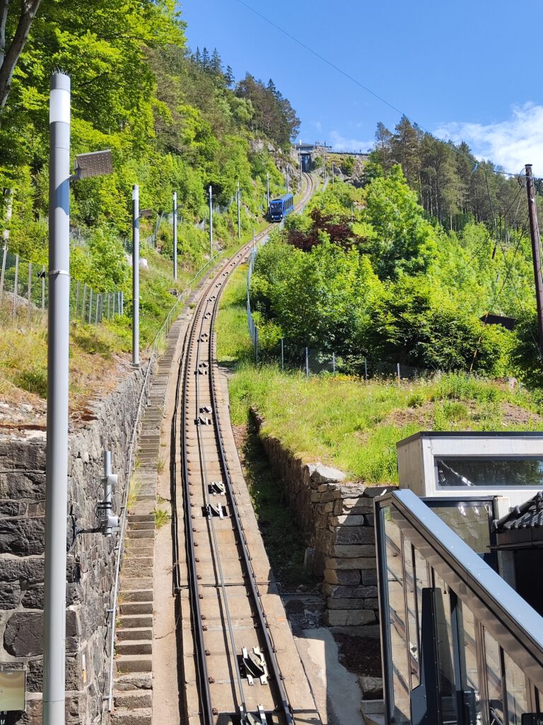 Guten Morgen liebe Sonne hieß es auch heute wieder. Wir standen nicht so spät auf, denn es lag ein langer Tag vor uns…wir wollten Bergen besuchen. Also packten wir nach dem Frühstück ein paar Sachen und Proviant ein. Der Qeridoo für ViP kam auch mit. Gestern hatten wir uns informiert, wie wir vom Campingplatz mit den Öffentlichen nach Bergen kommen. Online konnten wir Tickets kaufen und die Bushaltestelle liegt genau vorm Campingplatz. 9:43 Uhr ging es mit dem Bus Nr. 90 los. ViP war es zu Beginn im Bus gar nicht so geheuer…es gibt ja viele Kurven. Auf dem Schoß von mir ging es dann und er gewöhnte sich an die Fahrt. Nach ca. 10min erreichten wir die Endstelle vom Bus und stiegen aus. Dann fuhren wir mit der Tram Nr. 1 weiter Richtung Bergen Zentrum. Die Fahrt dauerte ca. 30 Minuten und ViP machte gut mit. Nun standen wir im Zentrum von Bergen im Sonnenschein…es sollten heute 26°C werden und das in der regenreichsten Stadt Europas. Als erstes liefen wir Richtung Hafen und schauten uns dort um. Der Fischmarkt befindet sich ebenfalls dort und lockt viele Leute an. Es gab verschiedene Fischsorten, noch lebende Hummer und riesige Krabben in „Aquarien“ und fertig zubereitete Fischspeisen. Von der Größe her ist der Markt aber überschaubar. Dann gingen wir weiter den Hafen entlang und sahen noch einige kleine und große Segelboote und natürlich viele Schiffe verschiedener Größe. Ebenfalls am Hafen gelegen, nur durch eine Straße getrennt, stehen bunte Holzhäuser. Diese gehören zu dem bekannten Hanseviertel Bryggen. Wir schlenderten an diesen Häusern vorbei und auch zwischendurch…dort führen enge Wege auf Holz hindurch. Im Erdgeschoss der bunten Häuser befinden sich heutr Souvenirläden und ein paar andere Geschäfte. ViP schlief irgendwann unterwegs ein und wir konnten auch mal in einen Laden hineinschauen. Anschließend liefen wir wieder zurück zum Fischmarkt und kauften uns dort ein fischiges Mittagessen, welches wir auf einer Bank am Hafen, umgeben von Tauben und Möwen, zu uns nahmen. Nach der Stärkung wollten wir nun auf den Fløyen (Berg in Bergen) hoch. Wir machten noch einen kurzen Abstecher zur Domkirche und bogen dann ab zur Fløibahnstation, welche sich nicht weit vom Zentrum befindet. Die Fløibahn ist eine Standseilbahn, mit der man in 6 Minuten auf dem Berg ankommt. Wir kauften ein One Way Ticket und fuhren nach oben. Dort angekommen, hatten wir eine wunderschöne Aussicht über Bergen und wir konnten die Größe von Bergen nun wahrnehmen. Nach einer Weile gingen wir weiter Richtung Spielplatz und trafen unterwegs auf die Ziegen vom Fløyen. Die sind ganz schön groß, aber waren lieb. Eine legte sich fast mitten auf den Weg in die Sonne und wir konnten diese streicheln…auch ViP traute sich, sie anzufassen. Da es so warm war, entschieden wir uns zu einem See, welcher nicht weit entfernt auf dem Plateau vom Fløyen liegt, zu wandern. Dies ist ein kleiner See mit Seerosen und einigen Enten. Wir hielten unsere Füße zur Erfrischung ins Wasser (ViP wäre am liebsten gleich wieder komplett reingesprungen) und beobachteten Babyenten. Bevor wir uns an den Abstieg zu Fuß machten, stoppten wir nochmal im „Trollwald“…da gab es verschiedene Trollköpfe aus Holz zu sehen. Dann ging es in Serpentinen bergab, ca. 3,4km. Zum Glück ohne Stufen und breitem Weg, sodass es für den Qerdioo kein Problem war. ViP schlief bei dem Geschuckel nochmal ein. Nach ca. 45 Minuten kamen wir unten an und da es schon 16 Uhr war, traten wir den Rückweg zur Tramstation an. Bevor wir jedoch einstiegen, suchten wir uns eine schattige Bank im anliegenden Park und aßen Vesper. ViP lief noch etwas herum und zupfte Blätter von der Hecke und schenkte uns diese. Danach tourten wir zurück, erst Tram, dann Bus. ViP konnten wir einigermaßen beschäftigen und wir kamen 17:25 Uhr am Campingplatz wieder an. Wir waren ganz schön platt, ruhten uns am WoMo etwas aus und sprangen unter die Dusche. Nun genießen wir noch den Abend und lassen die Erlebnisse und Eindrücke vom Tag Revue passieren.