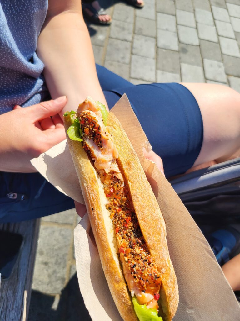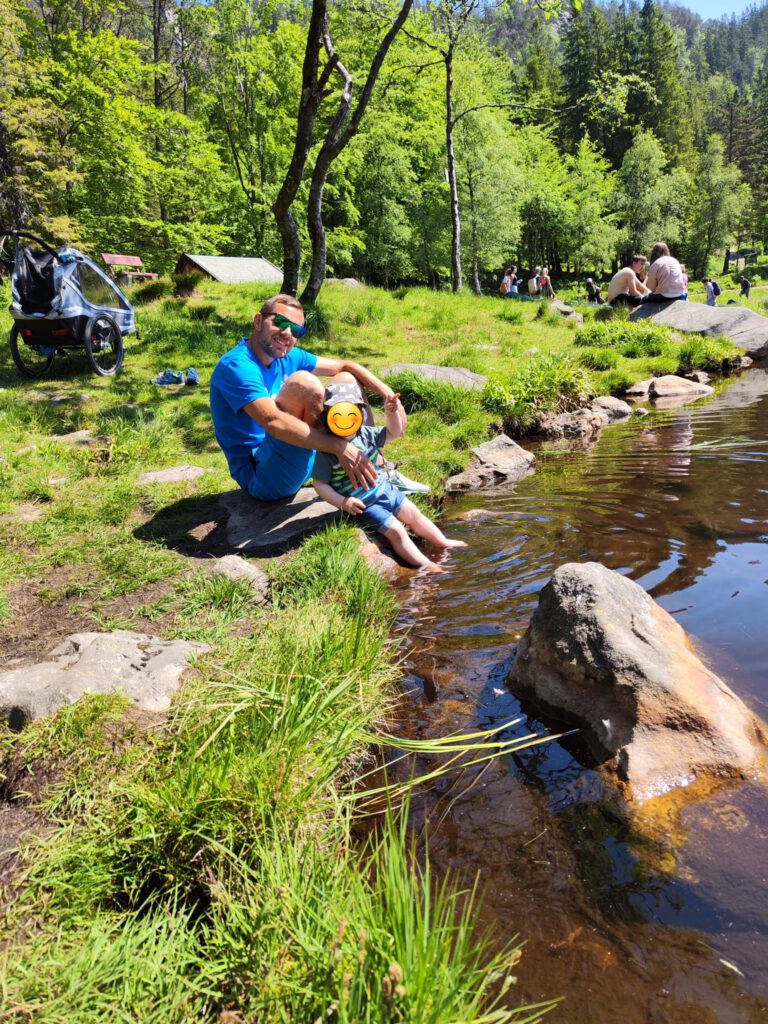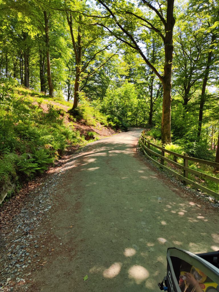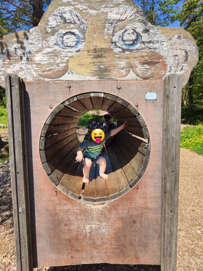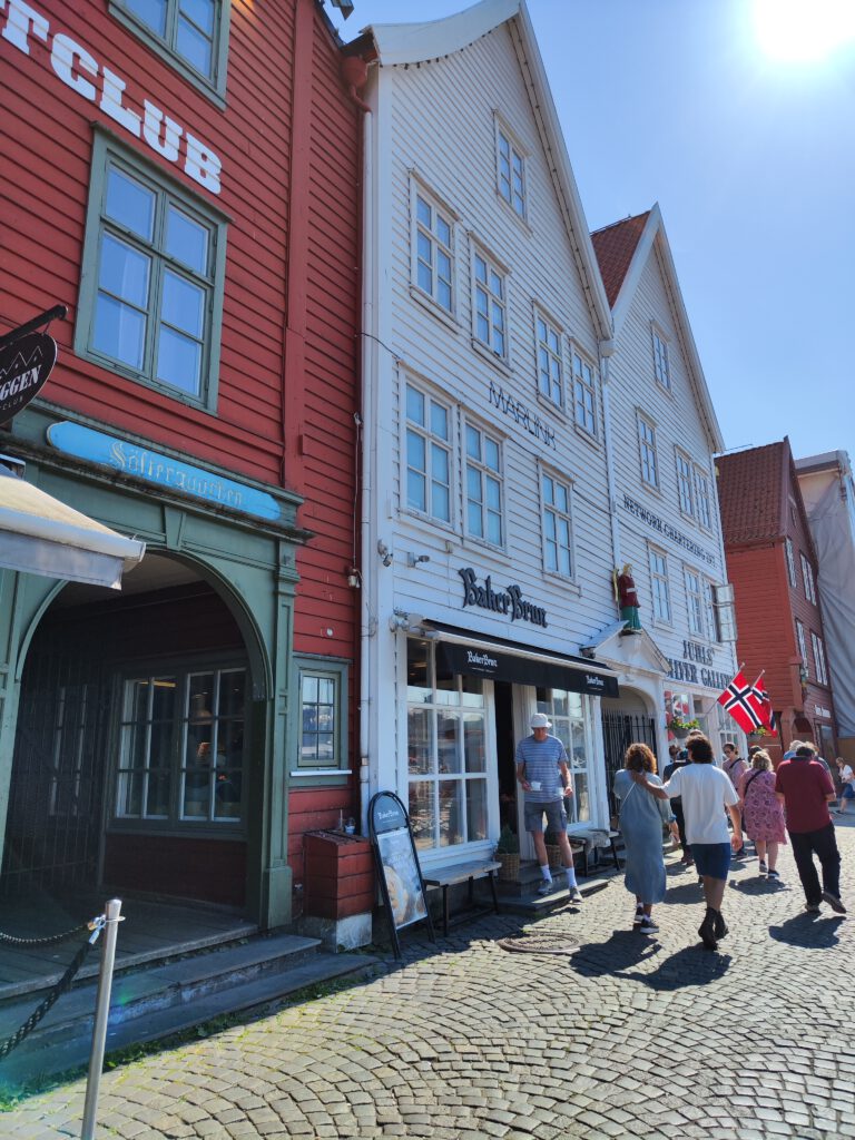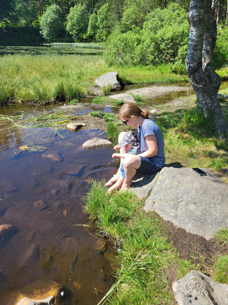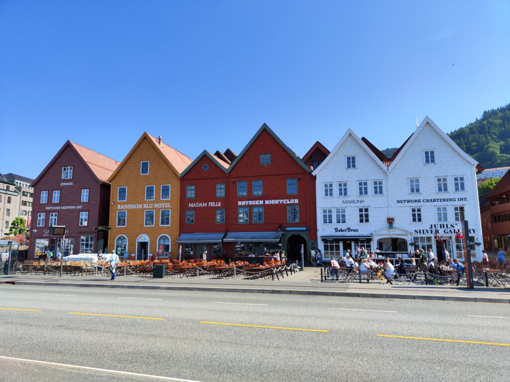 Guten Morgen liebe Sonne hieß es auch heute wieder. Wir standen nicht so spät auf, denn es lag ein langer Tag vor uns…wir wollten Bergen besuchen. Also packten wir nach dem Frühstück ein paar Sachen und Proviant ein. Der Qeridoo für ViP kam auch mit. Gestern hatten wir uns informiert, wie wir vom Campingplatz mit den Öffentlichen nach Bergen kommen. Online konnten wir Tickets kaufen und die Bushaltestelle liegt genau vorm Campingplatz. 9:43 Uhr ging es mit dem Bus Nr. 90 los. ViP war es zu Beginn im Bus gar nicht so geheuer…es gibt ja viele Kurven. Auf dem Schoß von mir ging es dann und er gewöhnte sich an die Fahrt. Nach ca. 10min erreichten wir die Endstelle vom Bus und stiegen aus. Dann fuhren wir mit der Tram Nr. 1 weiter Richtung Bergen Zentrum. Die Fahrt dauerte ca. 30 Minuten und ViP machte gut mit. Nun standen wir im Zentrum von Bergen im Sonnenschein…es sollten heute 26°C werden und das in der regenreichsten Stadt Europas. Als erstes liefen wir Richtung Hafen und schauten uns dort um. Der Fischmarkt befindet sich ebenfalls dort und lockt viele Leute an. Es gab verschiedene Fischsorten, noch lebende Hummer und riesige Krabben in „Aquarien“ und fertig zubereitete Fischspeisen. Von der Größe her ist der Markt aber überschaubar. Dann gingen wir weiter den Hafen entlang und sahen noch einige kleine und große Segelboote und natürlich viele Schiffe verschiedener Größe. Ebenfalls am Hafen gelegen, nur durch eine Straße getrennt, stehen bunte Holzhäuser. Diese gehören zu dem bekannten Hanseviertel Bryggen. Wir schlenderten an diesen Häusern vorbei und auch zwischendurch…dort führen enge Wege auf Holz hindurch. Im Erdgeschoss der bunten Häuser befinden sich heutr Souvenirläden und ein paar andere Geschäfte. ViP schlief irgendwann unterwegs ein und wir konnten auch mal in einen Laden hineinschauen. Anschließend liefen wir wieder zurück zum Fischmarkt und kauften uns dort ein fischiges Mittagessen, welches wir auf einer Bank am Hafen, umgeben von Tauben und Möwen, zu uns nahmen. Nach der Stärkung wollten wir nun auf den Fløyen (Berg in Bergen) hoch. Wir machten noch einen kurzen Abstecher zur Domkirche und bogen dann ab zur Fløibahnstation, welche sich nicht weit vom Zentrum befindet. Die Fløibahn ist eine Standseilbahn, mit der man in 6 Minuten auf dem Berg ankommt. Wir kauften ein One Way Ticket und fuhren nach oben. Dort angekommen, hatten wir eine wunderschöne Aussicht über Bergen und wir konnten die Größe von Bergen nun wahrnehmen. Nach einer Weile gingen wir weiter Richtung Spielplatz und trafen unterwegs auf die Ziegen vom Fløyen. Die sind ganz schön groß, aber waren lieb. Eine legte sich fast mitten auf den Weg in die Sonne und wir konnten diese streicheln…auch ViP traute sich, sie anzufassen. Da es so warm war, entschieden wir uns zu einem See, welcher nicht weit entfernt auf dem Plateau vom Fløyen liegt, zu wandern. Dies ist ein kleiner See mit Seerosen und einigen Enten. Wir hielten unsere Füße zur Erfrischung ins Wasser (ViP wäre am liebsten gleich wieder komplett reingesprungen) und beobachteten Babyenten. Bevor wir uns an den Abstieg zu Fuß machten, stoppten wir nochmal im „Trollwald“…da gab es verschiedene Trollköpfe aus Holz zu sehen. Dann ging es in Serpentinen bergab, ca. 3,4km. Zum Glück ohne Stufen und breitem Weg, sodass es für den Qerdioo kein Problem war. ViP schlief bei dem Geschuckel nochmal ein. Nach ca. 45 Minuten kamen wir unten an und da es schon 16 Uhr war, traten wir den Rückweg zur Tramstation an. Bevor wir jedoch einstiegen, suchten wir uns eine schattige Bank im anliegenden Park und aßen Vesper. ViP lief noch etwas herum und zupfte Blätter von der Hecke und schenkte uns diese. Danach tourten wir zurück, erst Tram, dann Bus. ViP konnten wir einigermaßen beschäftigen und wir kamen 17:25 Uhr am Campingplatz wieder an. Wir waren ganz schön platt, ruhten uns am WoMo etwas aus und sprangen unter die Dusche. Nun genießen wir noch den Abend und lassen die Erlebnisse und Eindrücke vom Tag Revue passieren.