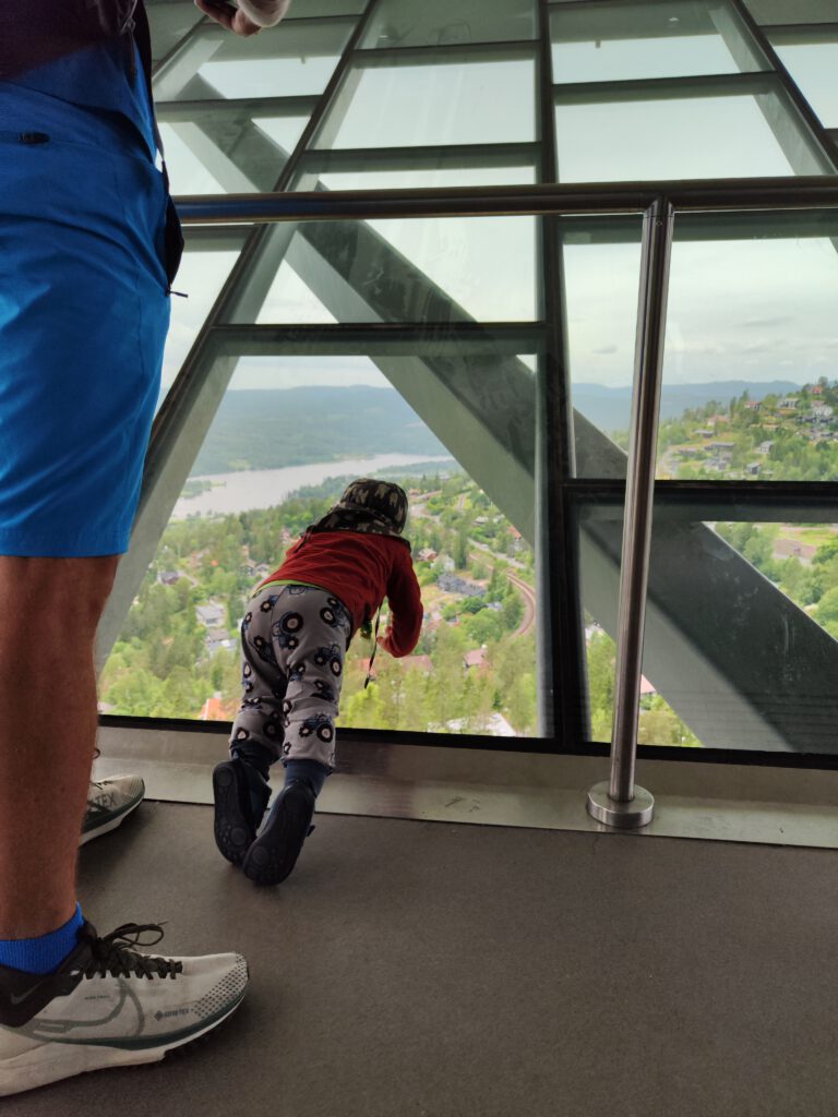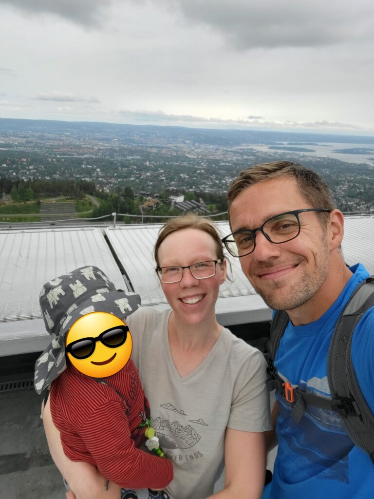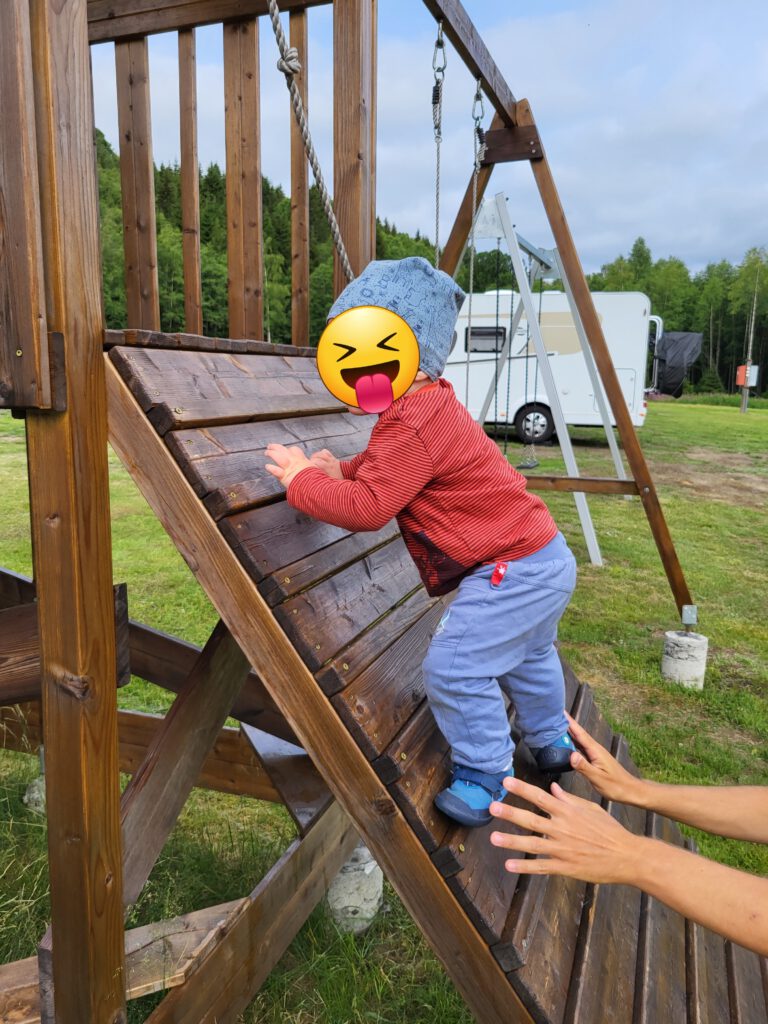 Der Himmel war bedeckt, als wir die Tür vom WoMo heute Morgen öffneten. Aber es war trotzdem so angenehm, dass wir draußen frühstückten. Danach war noch eine Runde klettern und rutschen für ViP angesagt. Und wieder einmal musste ich feststellen, wie groß er geworden ist und was er alles neues, in diesem Urlaub, gelernt hat. Das Klettergerüst mit der Rutsche hatte keine Treppe, die er raufklettern konnte, sondern nur eine Rampe mit Querstreben. Am Anfang hob ich ihn einfach hoch und er rutschte runter. Aber dann war mir das zu blöd und ich half ihm, fast eigenständig, hinaufzukommen. Bei den ersten versuchen musste ich ihn noch ganz schön unterstützen, doch nach und nach hab ich nur noch seine Füße gestützt und er ist selber hinaufgeklettert. Ich war stolz wie Bolle. Dann war es auch langsam an der Zeit, unsere Sachen zusammen zu packen und weiterzuziehen. Denn unser heutiges Tagesziel hieß Oslo. Kaum das wir vom Campingplatz runter gefahren sind, schlief ViP auch schon ein. Etwa 15min später schlief auch meine Copilotin. Das erste Stück ging wieder zurück nach Kongsvinger. In Kongsvinger bogen wir Richtung Westen, auf die E16 ab. Diese führte uns bis Kløfta. Also mich und meine 2 schlafenden Mitreisenden. Danach ging es auf die E6 nach Süden. Gut 25min später erreichten wir dann Oslo. Meine Copilotin und auch ViP wachten auf. Wir hatten uns einen Campingplatz auf einem Berg ausgesucht. Als wir dort allerdings angekommen sind, sagte man mir, dass wir nur für 1 Nacht bleiben könnten. Unser Plan sah allerdings anders aus. Also fuhren wir zum nächsten und letzten Campingplatz in Oslo. Dieser liegt in der Nähe vom Holmenkollen. Dort angekommen, sagte man uns, dass wir für 1 Nacht mit Strom bleiben können, allerdings für die nächste Nacht nochmal morgen nachfragen müssten, weil auch hier alles ausgebucht ist. Das warf unsere ganze Planung etwas über den Haufen. Wir parkten das WoMo erstmal und aßen zu Mittag. Danach beschlossen wir, den Nachmittag zu nutzen, um uns wenigstens das Gelände vom Holmenkollen anzuschauen. Wir fuhren mit den Öffentlichen dort hin. Nach 2x umsteigen und etwas Fußmarsch, hatten wir das Areal erreicht. Und ich muss sagen, die Schanze sieht noch imposanter aus als die in Lillehammer bzw. in Innsbruck (aufmerksame Leser erinnern sich 😉). Man kann sogar mit einem Fahrstuhl nach ganz oben zum Schanzentisch fahren. Gesagt getan, vor allem zur Freude von Janine. Oben angekommen, ging ViP erstmal schnurstracks zum verglasten Schrägboden und setzte sich ohne zu zucken darauf. Janine hat den Schock ihres Lebens bekommen und ich nahm in, nach mehrmaligen bitten, wieder runter. Nicht ohne noch ein paar Fotos gemacht zu machen. Wir stiegen noch eine Etage höher, auf eine Aussichtsplattform, von der man einen super Blick über ganz Oslo hat. Ein paar Fotos später, ging es wieder mit dem Aufzug nach unten. Wieder festen Boden unter den Füßen suchten wir uns eine Bank und aßen Vesper. Anschließend gingen wir noch ins benachbarte Biathlonstadion und schauten einigen Athleten beim Skatetraining bzw. Schießen zu. Nun war es an der Zeit, uns auf den Rückweg zu machen, ViP war fix und fertig. Kein Wunder, wenn man Mittags nur grob 1 Stunde schläft. Während des Rückwegs zum WoMo fing es leicht an zu regnen und wir beschlossen das der Kurze heute mal früher ins Bett geht. Gesagt getan. Nach dem Abendbrot verdaute er noch kurz und dann ging es für ihn in die Falle. Nachdem er im Land der Träume verschwand, aßen wir entspannt zu Abend und planen nun die nächsten Tage.