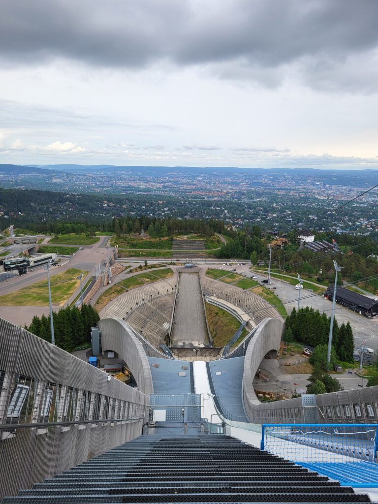 Ja, solche Sprungschanzen sind schon sehr imposant. Wir müssen auch immer rauf, wenn uns mal eine über den Weg läuft. Aber die am Holmenkollen scheint besonders schön zu sein. Das Biathlonstadion hätten wir uns auch angeschaut, ist sozusagen unsere Lieblings-Wintersportart.